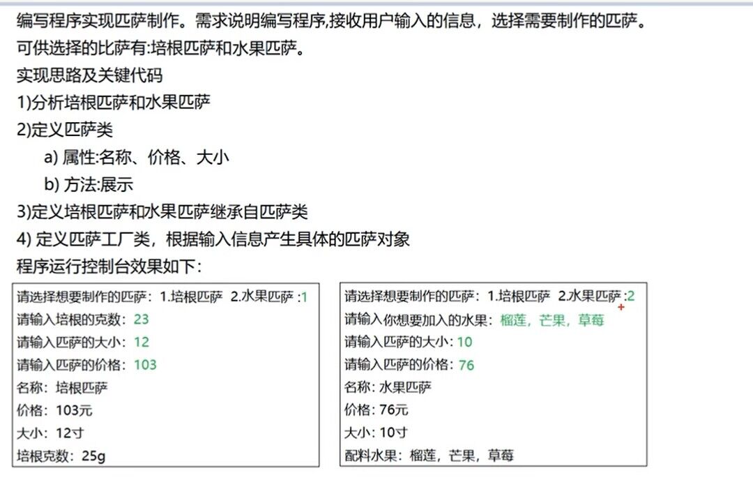 System.out.println("请选择想要制作的披萨(1.培根披萨 2.水果披萨):");