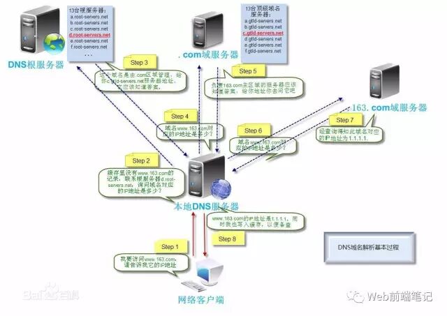 (3)、你输入的网址的DNS请求到达本地DNS服务器之后,本地DNS服务器会首先查询它的缓存记录,如果缓存中有此条记录,就直接返回结果,此过程是递归的方式进行查询。如果没有,本地DNS服务器还要向DNS根服务器进行查询。