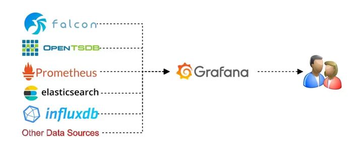 Grafana对我们当时在用的大部分监控系统(数据源)都有支持,比如Zabbix、OpenTSDB、Prometheus、InfluxDB、Elasticsearch