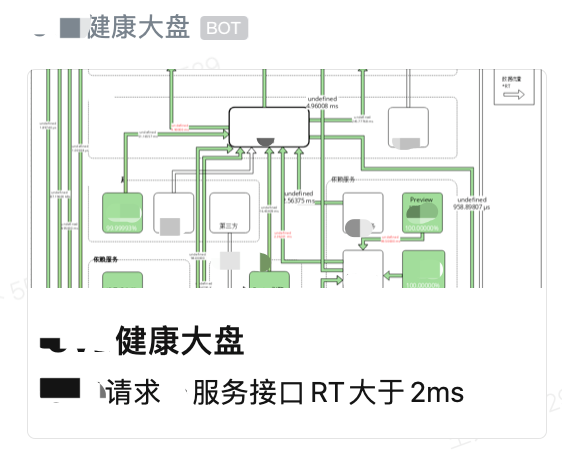 这个部分可以算作是上一个实战的延展,经过上面的建设我们已经有了服务级整体的请求流向图后。如果我们可以在服务发生「告警」的时候,同时把「监控大盘」的信息发出来,让我们在收到服务告警的同时可以快速感知服务的整体状态,这将大大提升我们问题排查的效率。