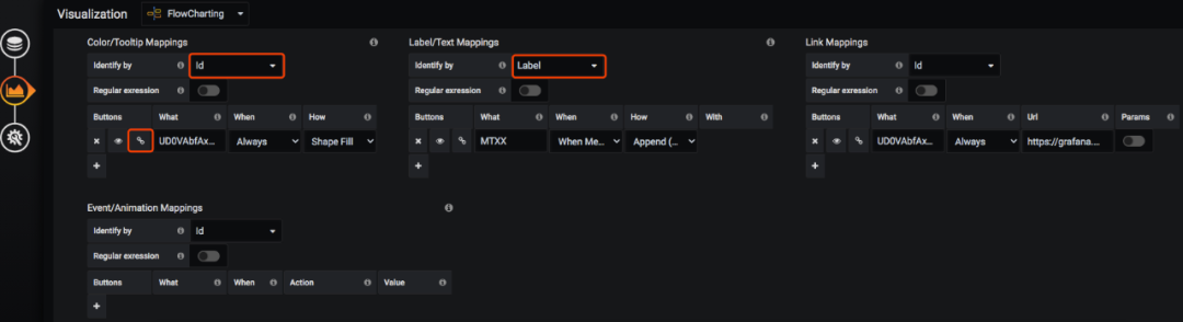 Link Mappings: 链接映射,点击图形可跳转至指定 URL(比如具体监控项的详情页面)。