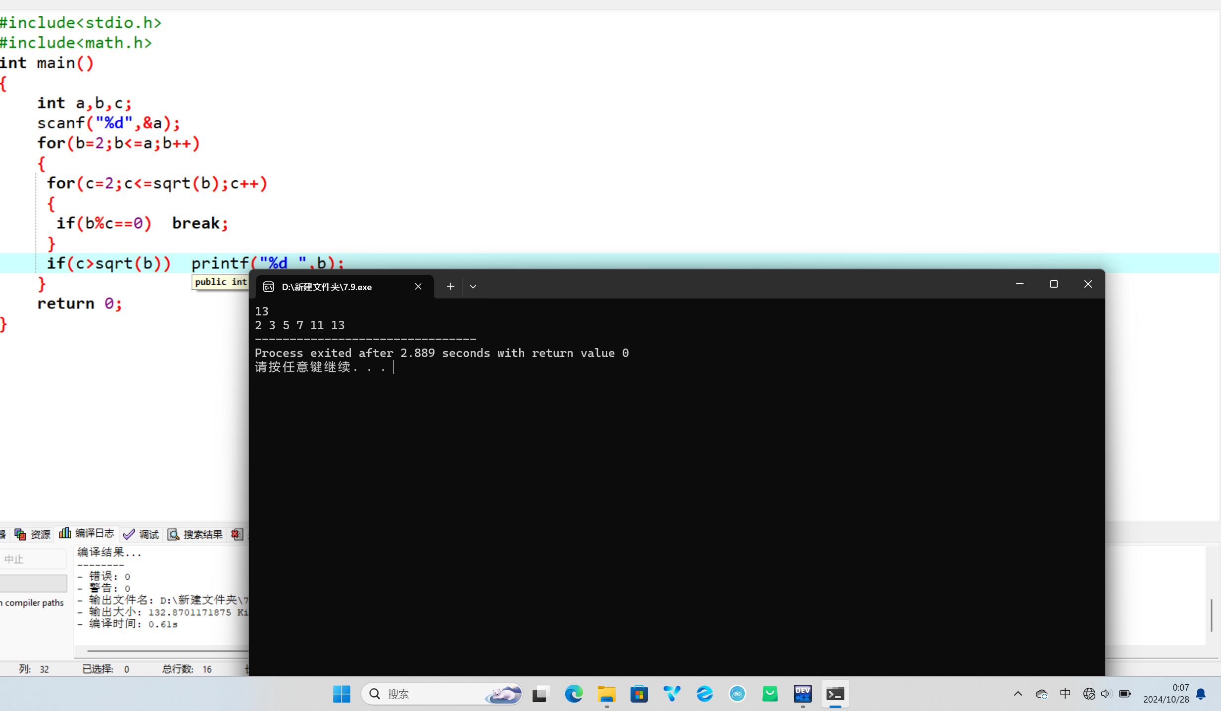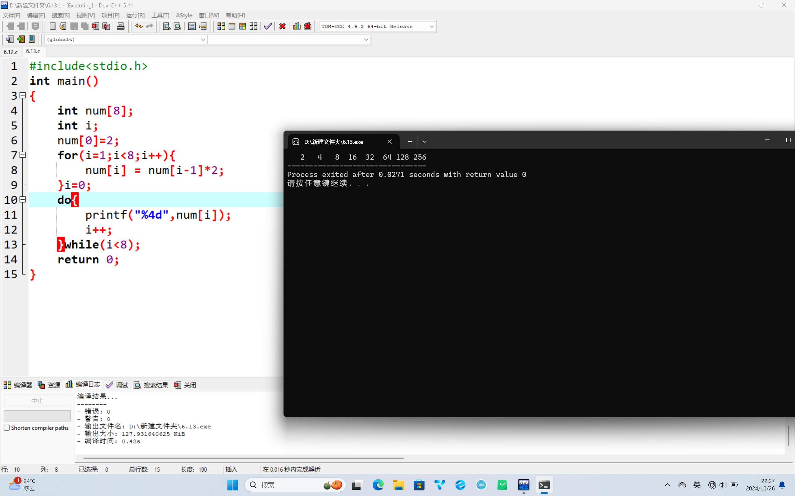问题:第二个printf中写为"\n"导致第八个值没有输出