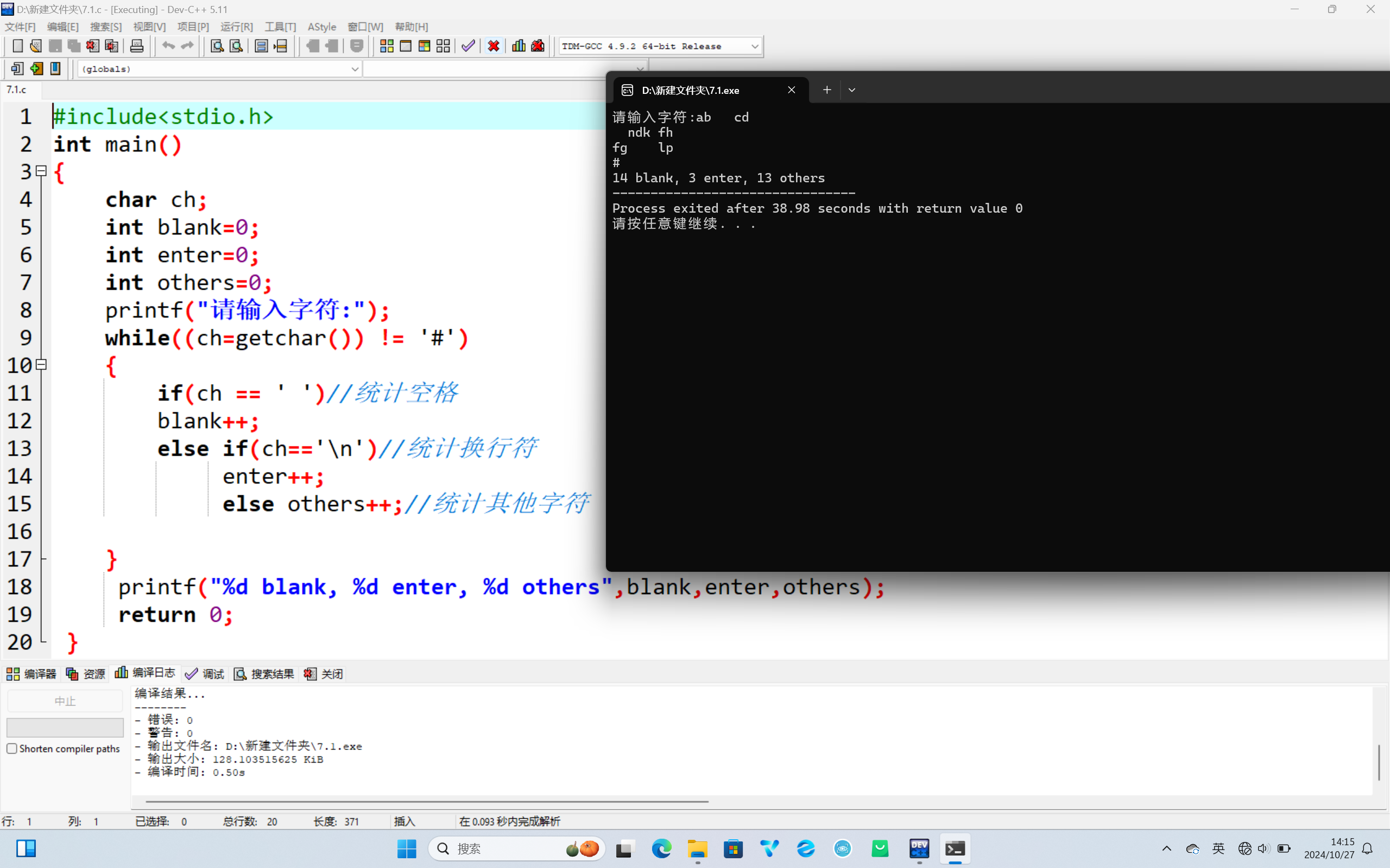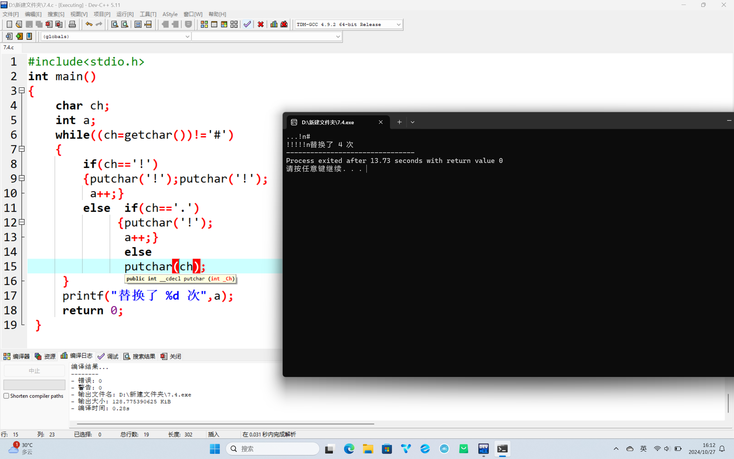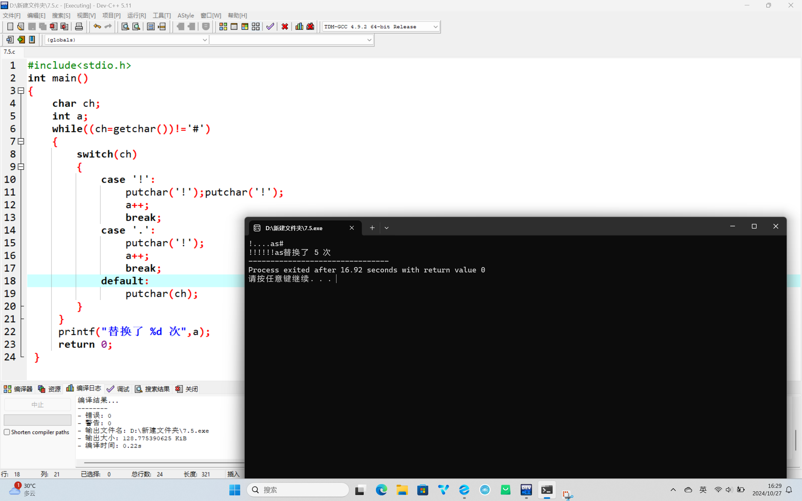 思考总结:题目好难 do while循环和putchar函数使用不熟练存在很多问题,而且审题不清楚;还需多加练习运用