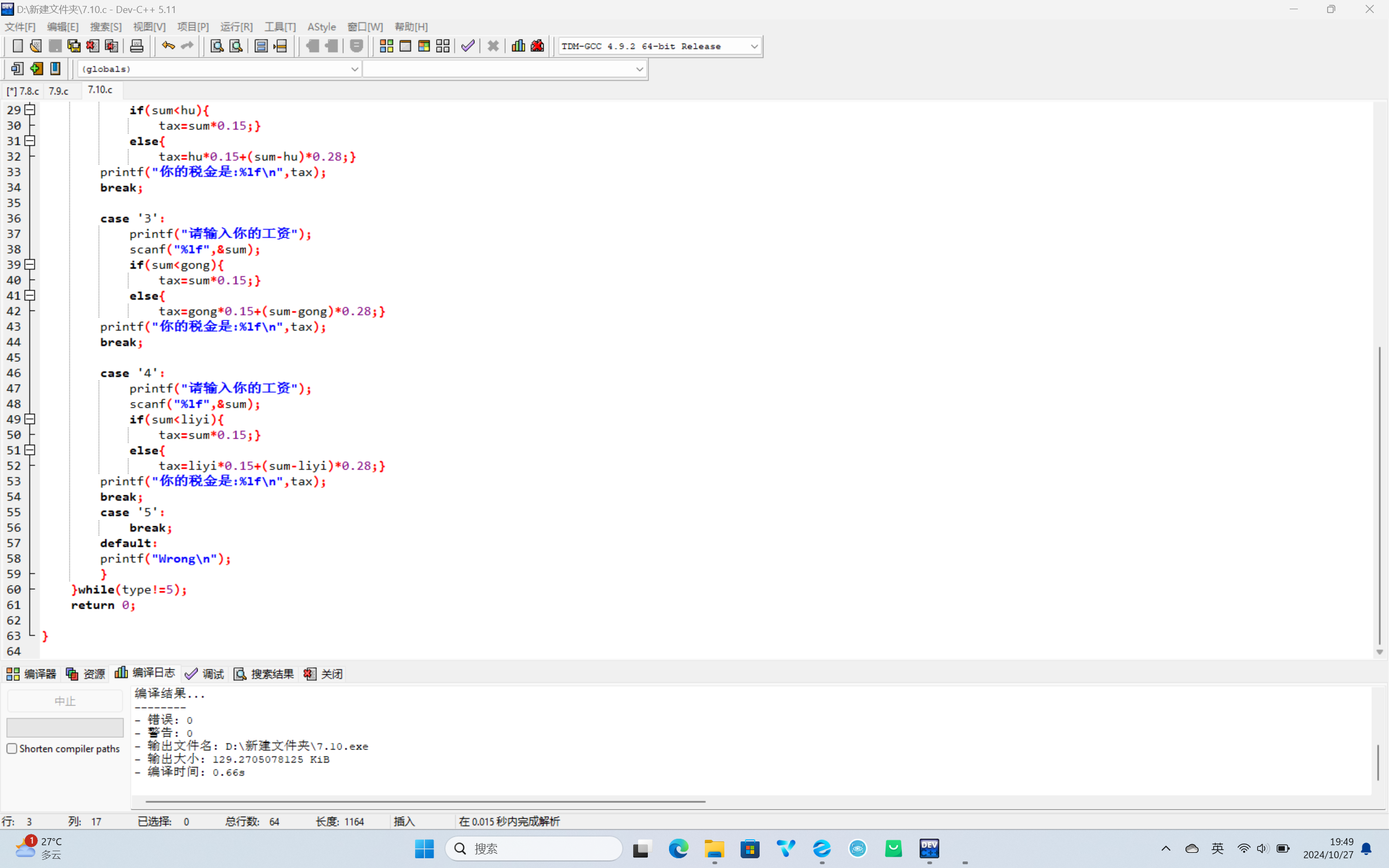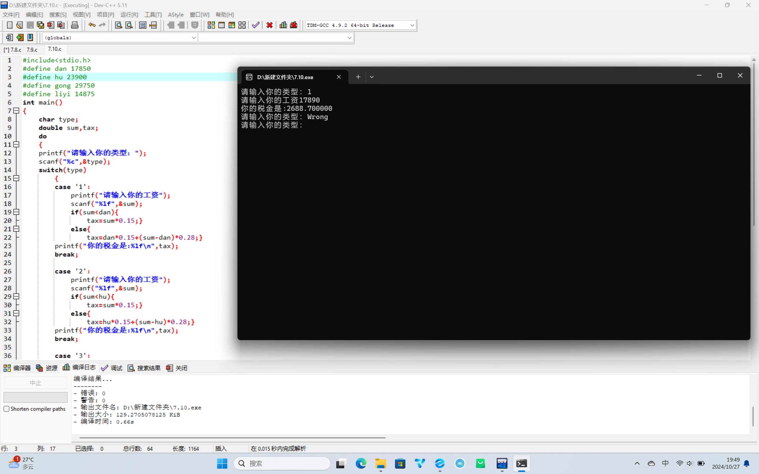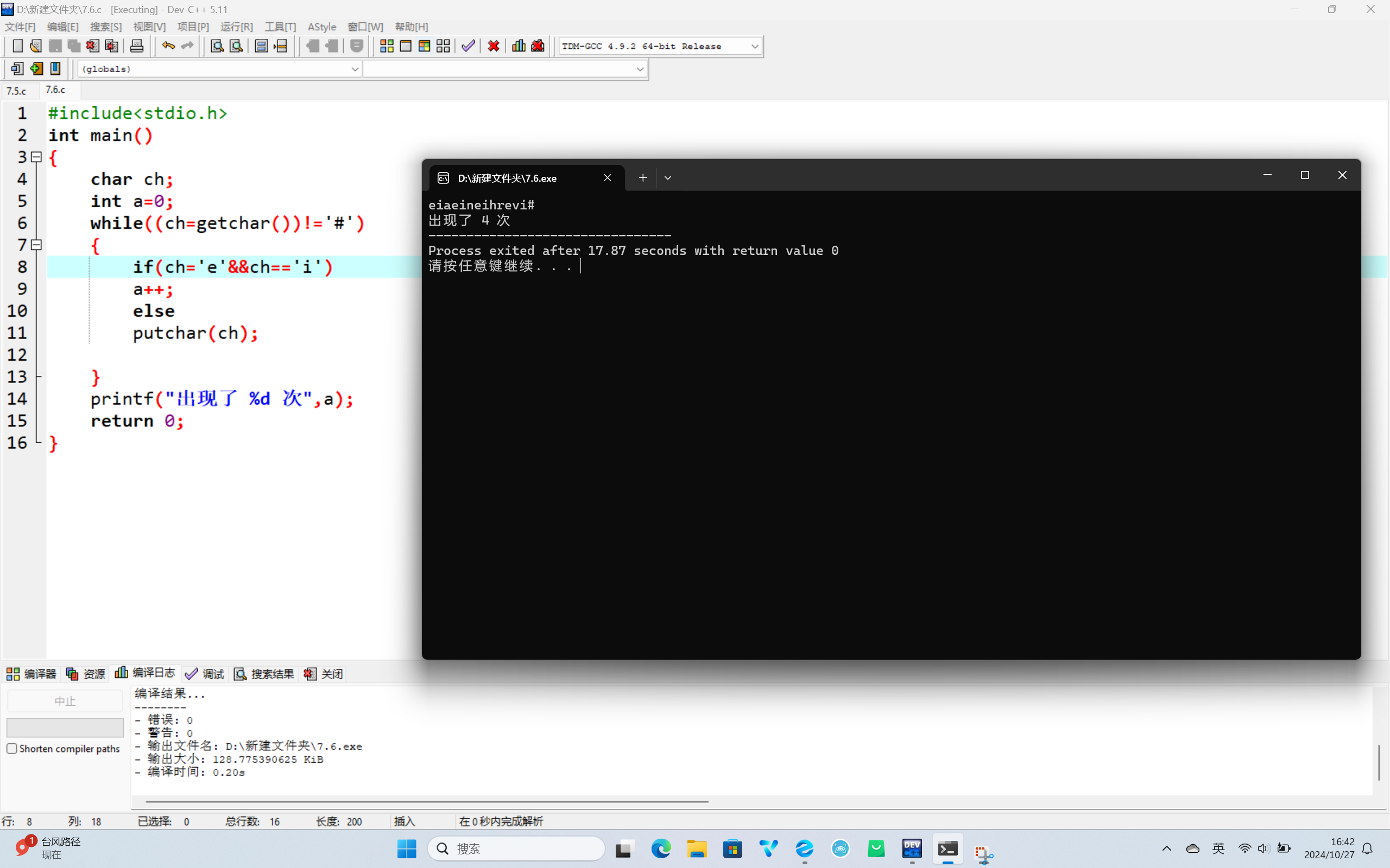 思考总结:题目好难 do while循环和putchar函数使用不熟练存在很多问题,而且审题不清楚;还需多加练习运用