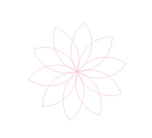 1 from turtle import* 2 3 setup(800,600) 4 pencolor('pink') 5 6 n=10 7 for i in range(10): 8 for j in range(2): 9 circle(80,90) 10 left(90) 11 12 right(360/n) 13 14 15 hideturtle() 16 done()