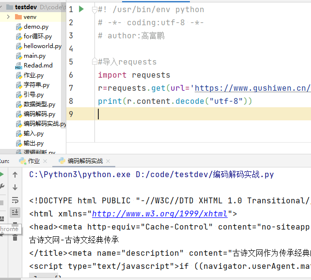 编码:就是把str的数据类型转为bytes的数据类型的过程,使用到的关键字是encode