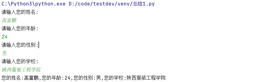 输出就是我们对字符串进⾏格式化的输出,⽐如我们定义了姓名,年龄,性别等。