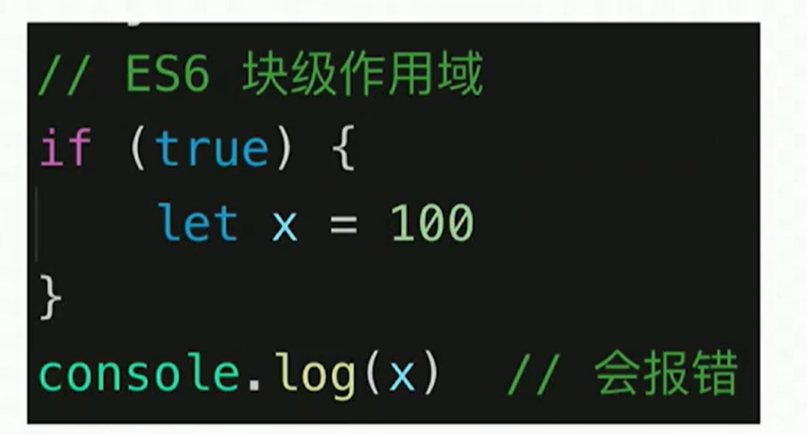 - 块级作用域(ES6)比如👇在if大括号内定义了x,在大括号外使用x会报错。