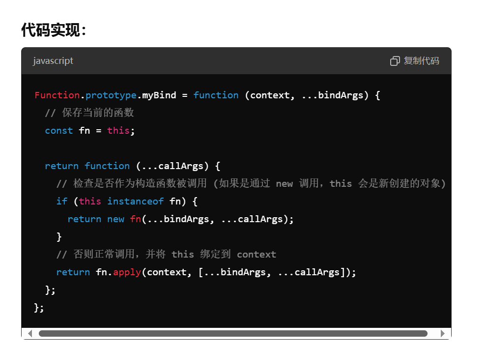 bind 函数的实现核心就是通过闭包保存 this 和参数信息,并在执行时将它们传递给原函数。如果你觉得代码有些复杂,建议先理解以下几个关键点: