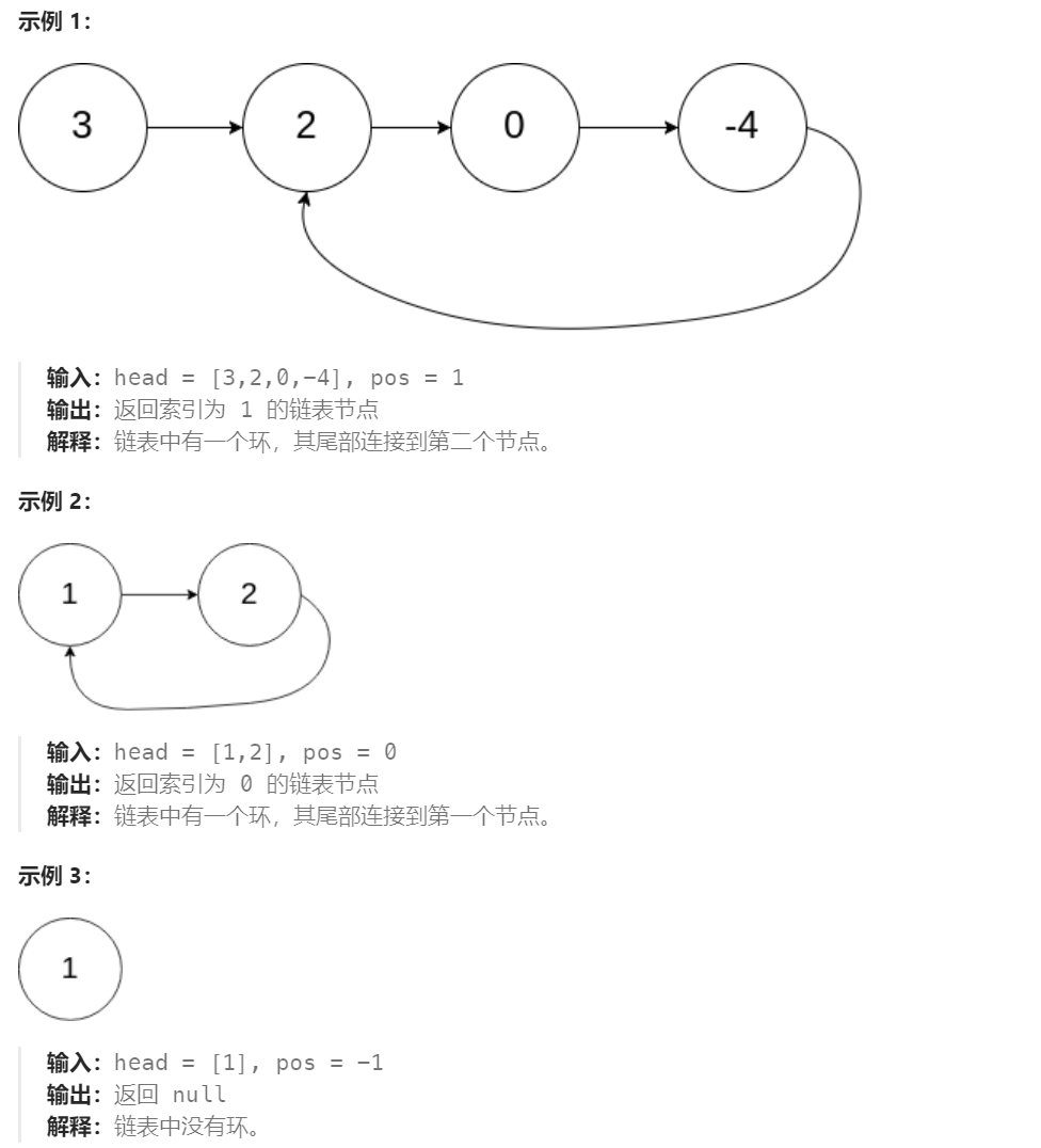 给定一个链表的头节点 head ,返回链表开始入环的第一个节点。 如果链表无环,则返回 null。