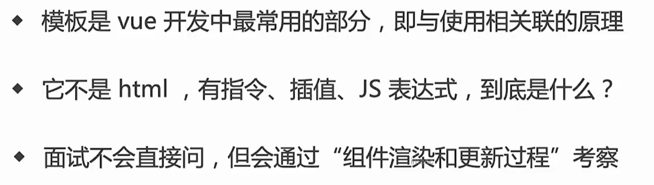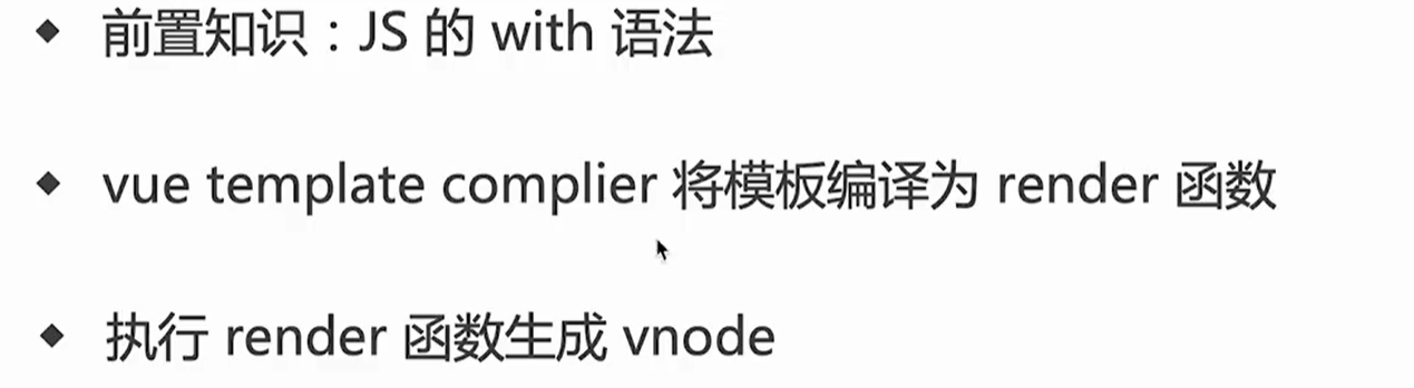 模版本质是个函数,模版执行最终生成一个 vnode。 vnode渲染到浏览器的DOM元素上,vnode 让组件修改之后作更新。(响应式监听属性变化,属性变化之后生成新的render函数,进而生成新的 vnode)