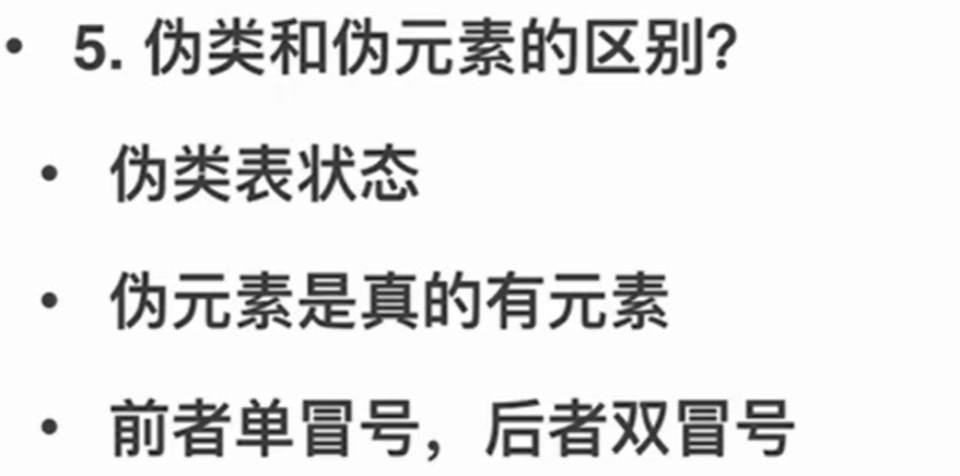 伪元素(双冒号)是真实存在的元素,可以被显示出来的元素;伪类(单冒号),当鼠标hover或者。。。元素某种状态下的样式。