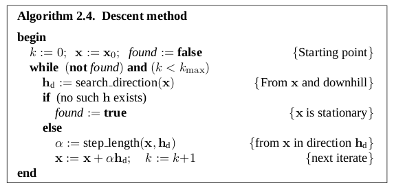 2.找到一个步长,给出一个好的下降值,下降方法的大致框架如下:
