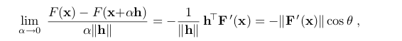 θ是向量h和F’(x)之间的夹角。如果θ=pi,则可以获得最大的增长率,例如,如果我们使用最速下降方向hsd,