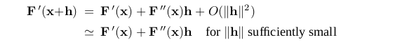 我们可以从条件x*是一个驻点开始进行推导。根据定义1.6,它满足F’(x*)=0.这是一个非线性的系统方程,从泰勒展开如下