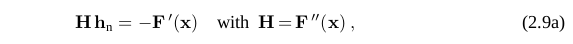 通过2.10得出上面的式子2.9a满足,那么就可以从2.9a中得到hn的值,不过要计算Hessian矩阵,很麻烦。