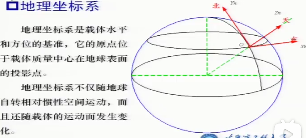 这个坐标系不仅随着地球的自转在惯性坐标系中发生相对运动而且还随着载体的运动而改变,