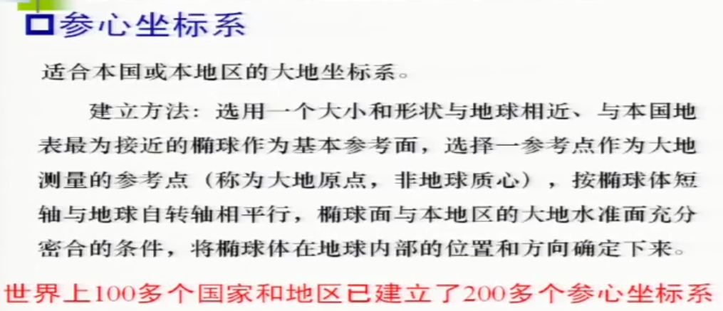 很多国家为了建立适合本国或者本地区的实际地形,就建立了一种参心坐标系