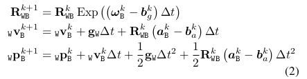 将(10)代入与两个连续关键帧(3)的位置相关的方程式,并忽略此时的加速度计偏差,如下所示