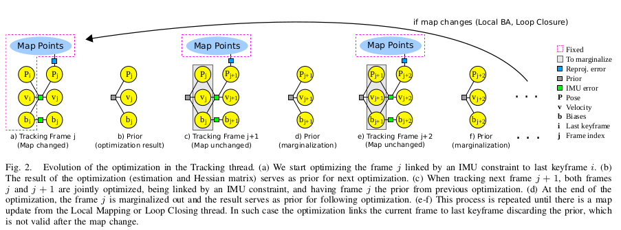 假设没有地图更新图2-c,下一帧j+1会用连接到帧j和用上一次优化的结果作为先验进行优化: