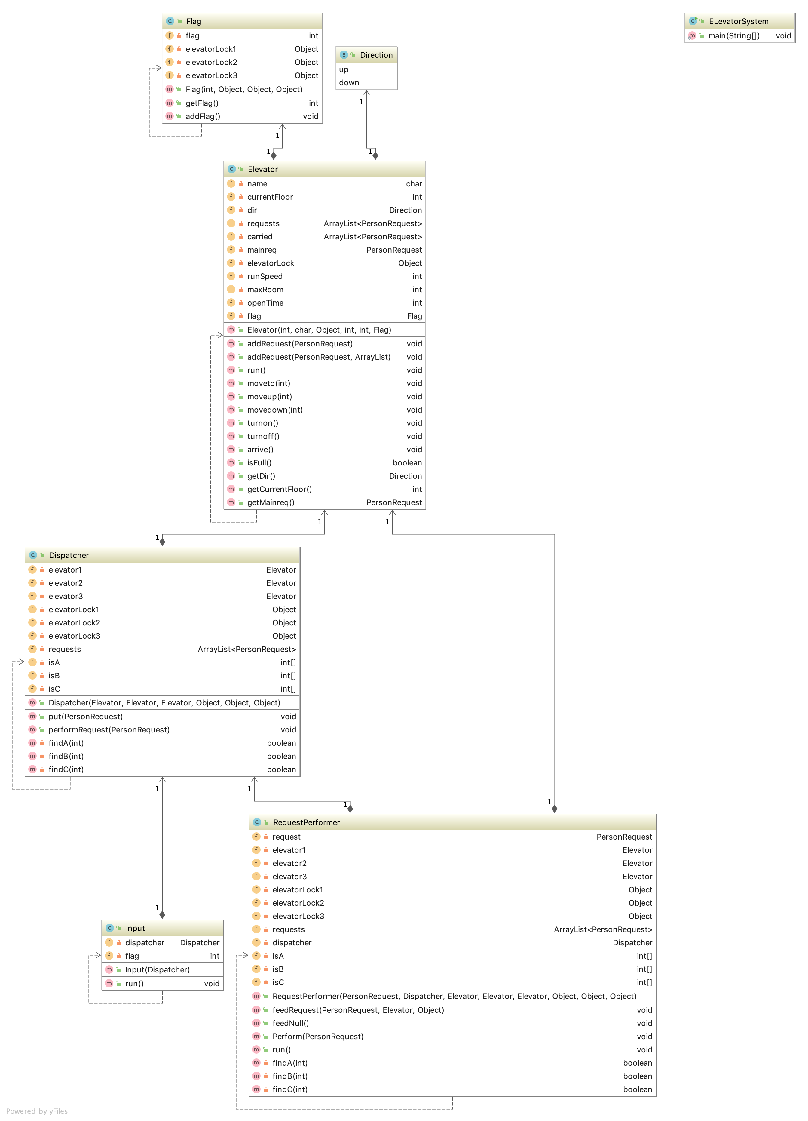 本次作业原本的设计是使用一个input线程和3个Elevator线程,通过Dispatcher相连,从而完成输入和电梯调度。但是由于测评机在测评时对线程的Input.start()有一定延迟,在我某一次提交玄学发现一个输入都没读到后,便将input线程直接写进了main函数(即ElevatorSystem)。(其实本质上是一样的)