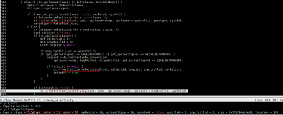 这里重点分析基表的简单查询——基于OpExpr类型的选择率计算,处理函数在clause_selectivity。如果是过滤条件就调用restriction_selectivity函数来获得OpExpr表达式的选择率,如果是连接条件则调用join_selectivity函数来获得选择率。