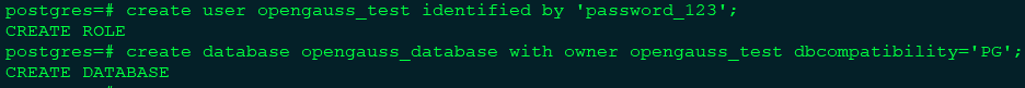在openGauss侧创建迁移时需要用到的用户以及database。