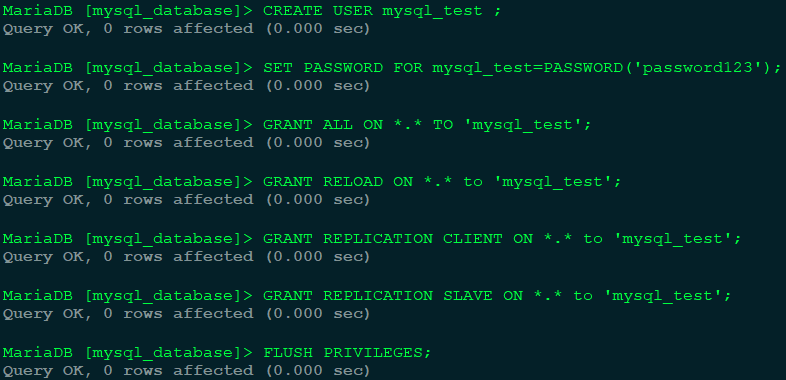 在MySQL侧创建迁移时需要用到的用户并赋予相关权限。