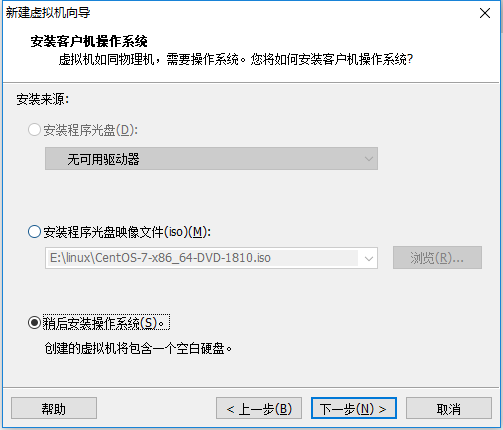 4.选择稍后安装操作系统