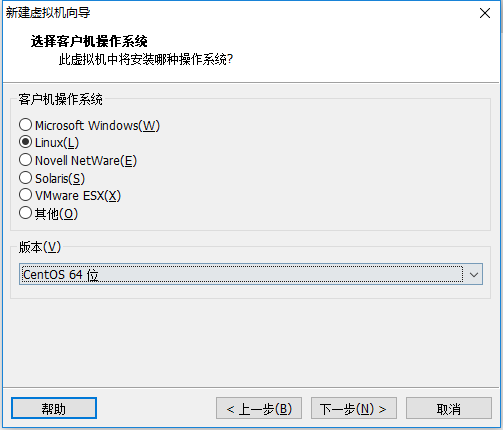 这里选择之后安装的操作系统,正确的选择会让vm tools更好的兼容。这里选择linux下的CentOS