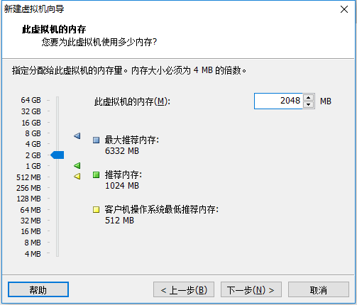 内存也是要根据实际的需求分配。我的宿主机内存是8G所以我给虚拟机分配2G内存。