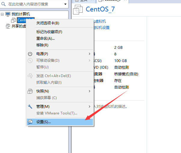 右击刚创建的虚拟机,选择设置