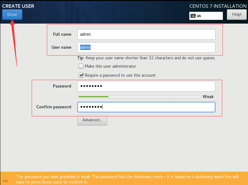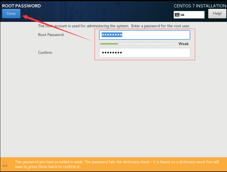 设置root密码后点击Done