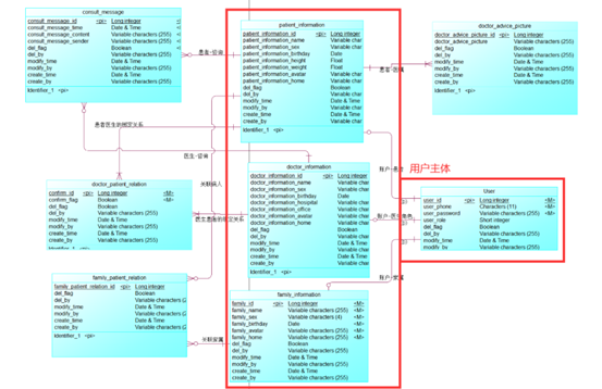 我们基于需求分析文档对各个功能模块所需要的数据信息进行构建相应的表,在创建表的过程中遵守“按类分表存储”的原则;我们从用户信息(包括患者、医生、家属)、设备信息、文章信息、健康评估信息等多个模块抽取出各个不同的类,根据他们之间的一对多、多对多、多对一等不同的联系创建关系表,并在powerdesigner上创建cdm、pdm并生成数字字典,随后编写数据库文档。