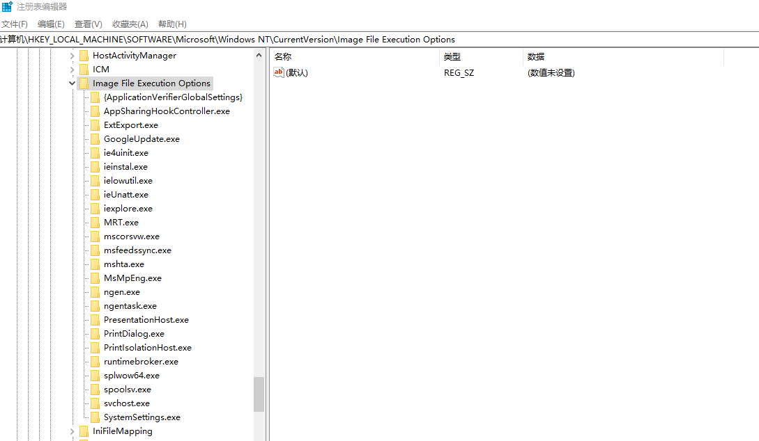- 排查HKLMSOFTWAREMicrosoftWindows NTCurrentVersionImage File Execution Options 以及HKLMSOFTWAREMicrosoftWindows NTCurrentVersionSilentProcessExit项值是否存在关联。