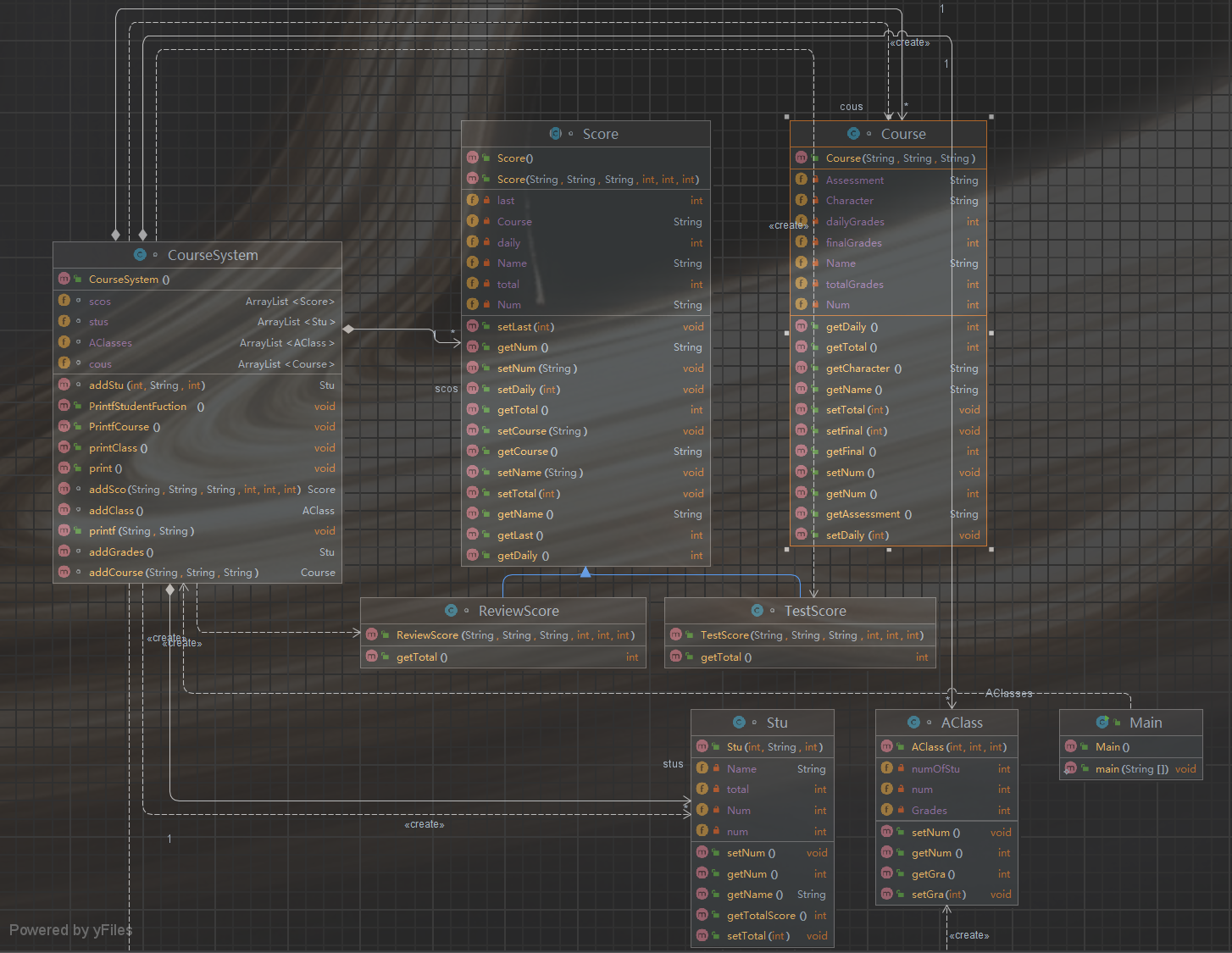 本次题目因为最开始便对整个题目的类进行了设计,所以在写的时候也不会显得那么棘手,主要是对于课程信息以及成绩信息两方面的处理,其中例如对于课程名称的限制,包括课程种类的限制以及不同的考核方式的处理方式,对此我均将这些信息放入课程系统中进行进一步的处理以及包括成绩信息类的计算放在成绩类中进行处理包括错的的信息错误的处理,在此我主要使用到的是arraylist进行信息的存储,不过在写之后仔细一想实际上可以使用到map进行课程信息的存储,但是后面一想因为map以及set类中会对相同名称的key进行覆盖,就没考虑用,不过在后面仔细一想实际上可以将学号作为key来识别因为同名同姓的虽然存在,但是学号是唯一的,而且对于相同学生相同的成绩以及关于成绩的遍历查找这块实际上hashmap的效率是远高于arraylist,这里面涉及到的一些算法以及探查就比较难懂了,还需要后续进行学习,主要就是遍历查找成绩再进行处理,以及包括成绩类的输出时每次增加一门成绩便累加,最后输出平均绩时再根据学生的数目除以得出结果.但是对于这道题目而言,不得不说的是代码长度的限制(吐槽),因为真的写了500多行,然后测试点都显示过了,想着差不多完成的时候发现代码长度超出限制,对此,我不得不进行的筛选大法以及改名大法,就是不断地缩写各种名称以及对于一些类中不用的set,get方法进行了优化,之后才能在代码长度限制之内实现.但实际上在询过过其他人之后发现还是对于一些正则表达式的运用的不熟悉,因为对于很多相关处理我还是集中体现在调用一些常用类的方法对其进行筛选而没有全部能够使用正则表达式进行处理,这也是别人代码可能仅有两三百行,而我直接飙至5.600行的原因,对于正则表达式的运用还需多熟悉,最后就是有一个测试点死活找不出来,尝试了很久,最后蚌埠住了.