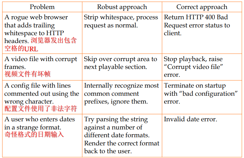 对外的接口,倾向于健壮;对内的实现,倾向于正确。(与后文中提到的Exception和Assertions的使用场景类似)
