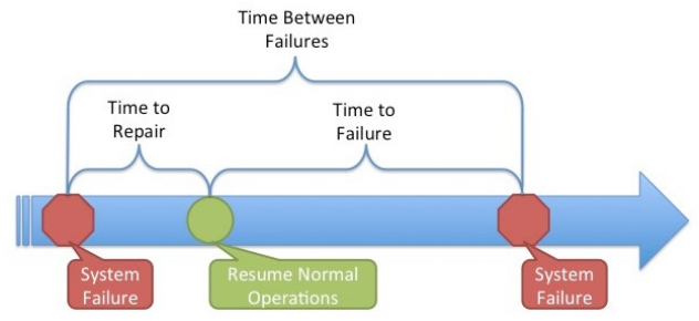 MTBF的计算依赖于对系统failure的定义:对于可修复系统,是指导致系统不可使用的failure,出现问题,但系统仍可运行,则不视为failure。