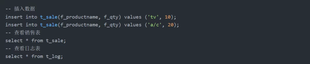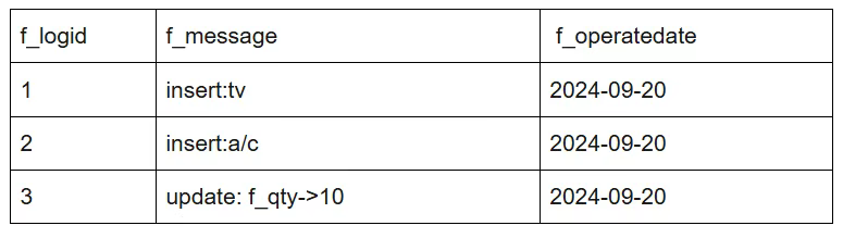 接下来,我们继续使用上述表结构,创建一个触发器,用于在每次更新t_sale 表中的f_qty字段时,自动将相关信息记录到t_log表中。