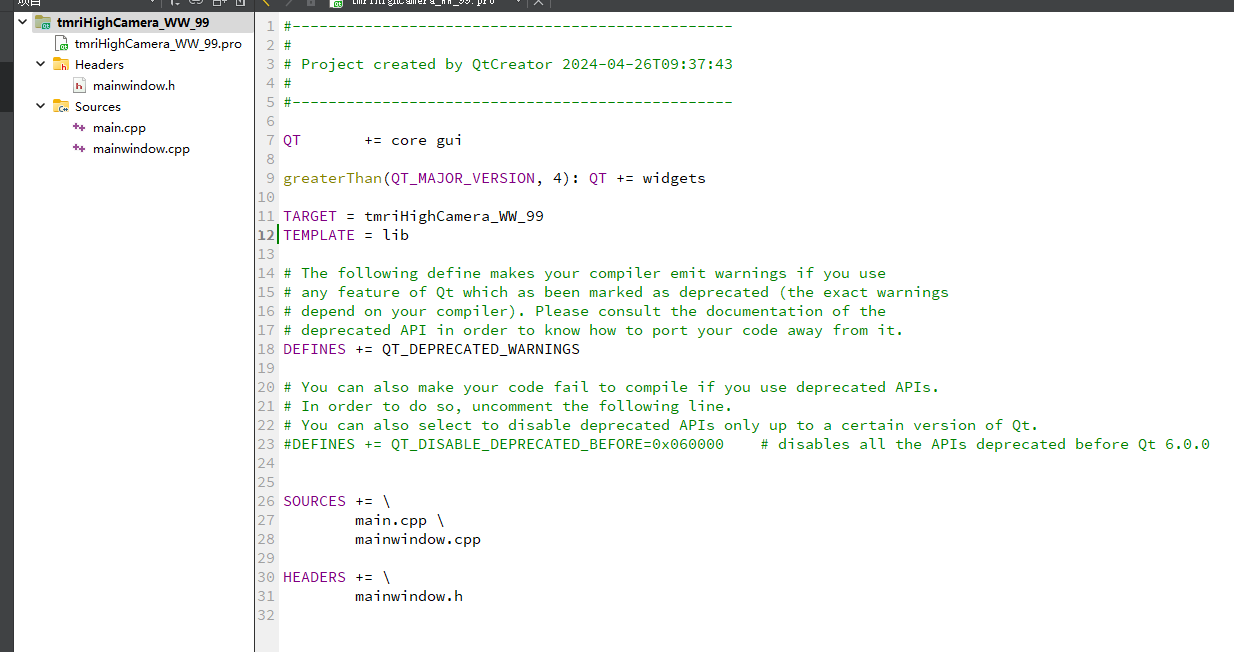 打开pro文件,因为我们创建的是app,需要的是dll,修改app->lib,注意不是dll