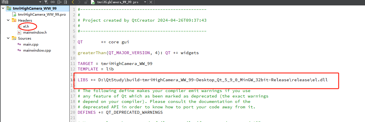 在工程中加入头文件,在pro添加dll的路径(注意这里静态调用没有用到lib文件)
