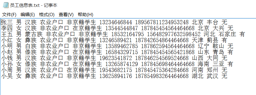 员工信息表.txt 下图: