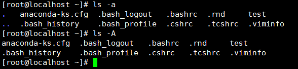 -A 查看目录所有文件,不包括上级目录和当前目录的隐藏文件