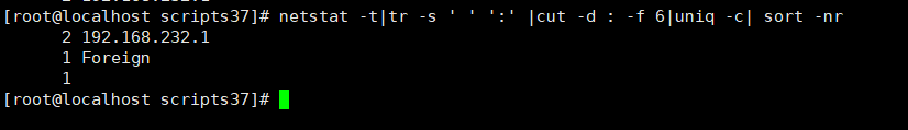 3、统计当前连接本机的每个远程主机IP的连接数,并按从大到小排序