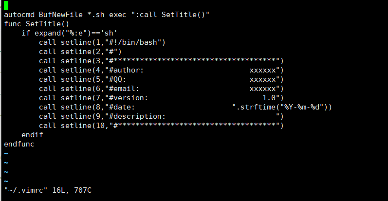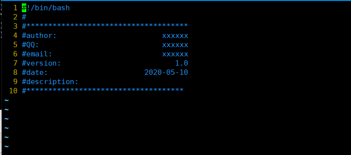 5、编写生成脚本基本格式的脚本,包括作者,联系方式,版本,时间,描述等