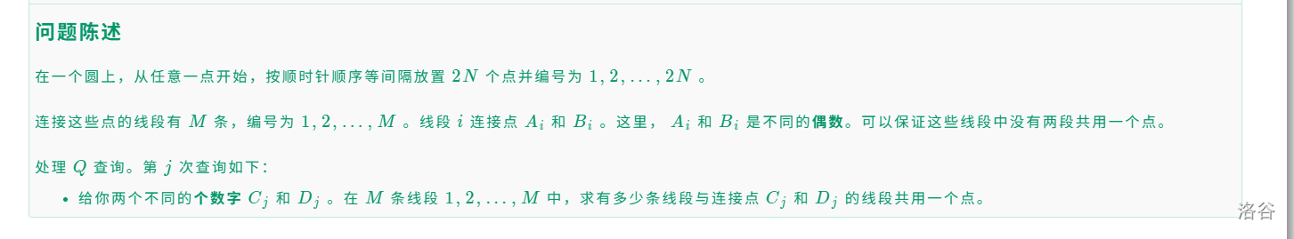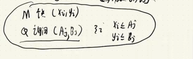所以问题转化成在平面直角坐标系上M次询问每次询问一个点(ci,di),问它是否在多少个矩形内
