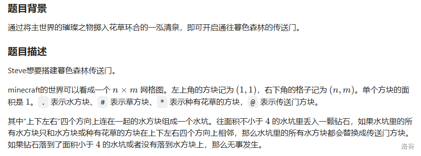 从钻石的位置开始遍历水方块,如果相邻方块有泥土说明这个水坑不能转化为传送门。