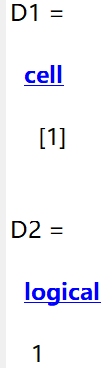 代码运行结果如下。D1是元胞类型,而D2是逻辑型。