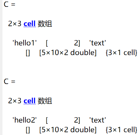 - 函数celldisp(),用文字方式显示元胞数组所有元胞的内容。