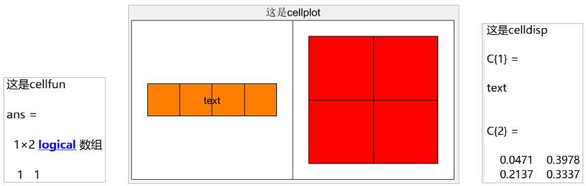- 函数cellplot(),用图形方式显示元胞数组所有元胞的内容。